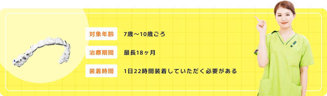 お子さまの発育状況によって変わりますので、まずは矯正の無料相談で検査を行いましょう。 -