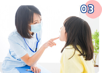 お子さまの顎の成長や歯の状態を確認するために、お顔や口の中の写真撮影、歯の型などをとります。