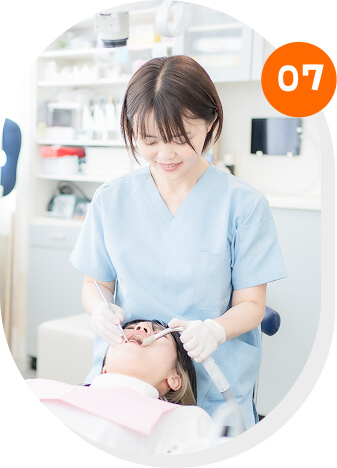 メンテナンスでは、健康なお口の中を保つための歯のクリーニング、フッ素塗布などをして、むし歯や歯周病を予防します。